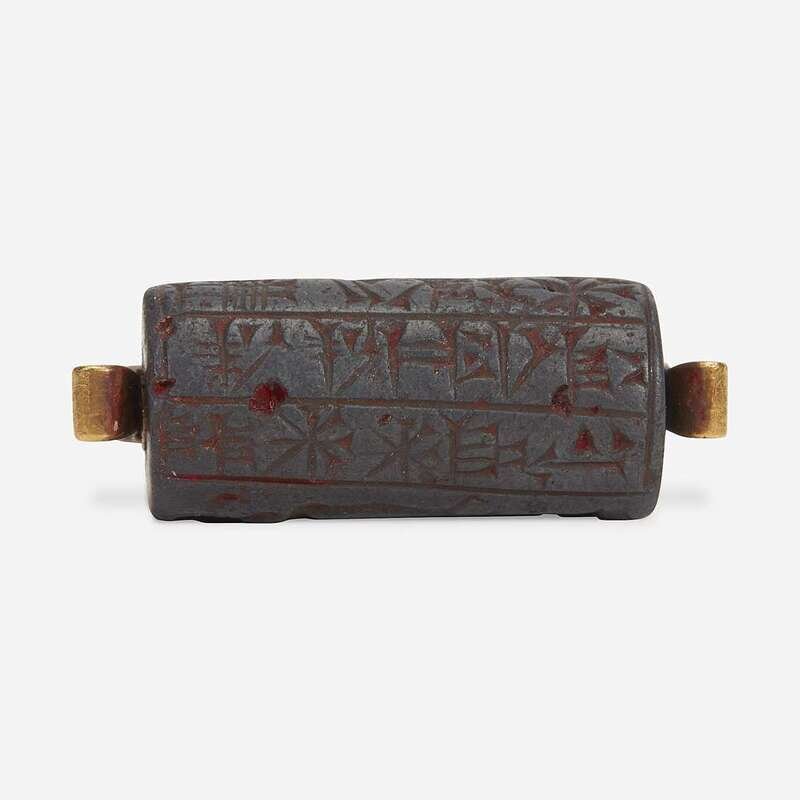 A Babylonian carved hematite cylindrical seal second millenium B.C.