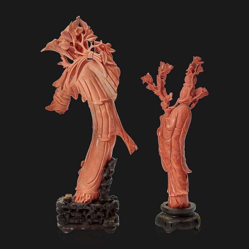 Two Chinese carved coral meiren
