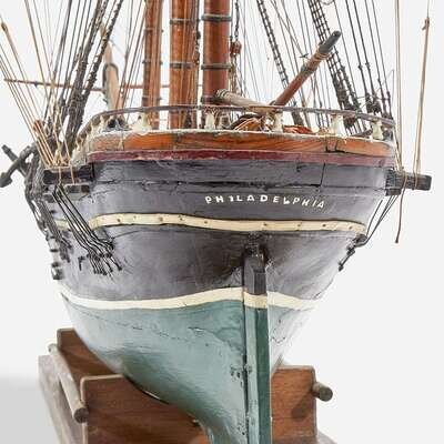 A carved and painted model of the Ship Philadelphia 19th century, restored 1951