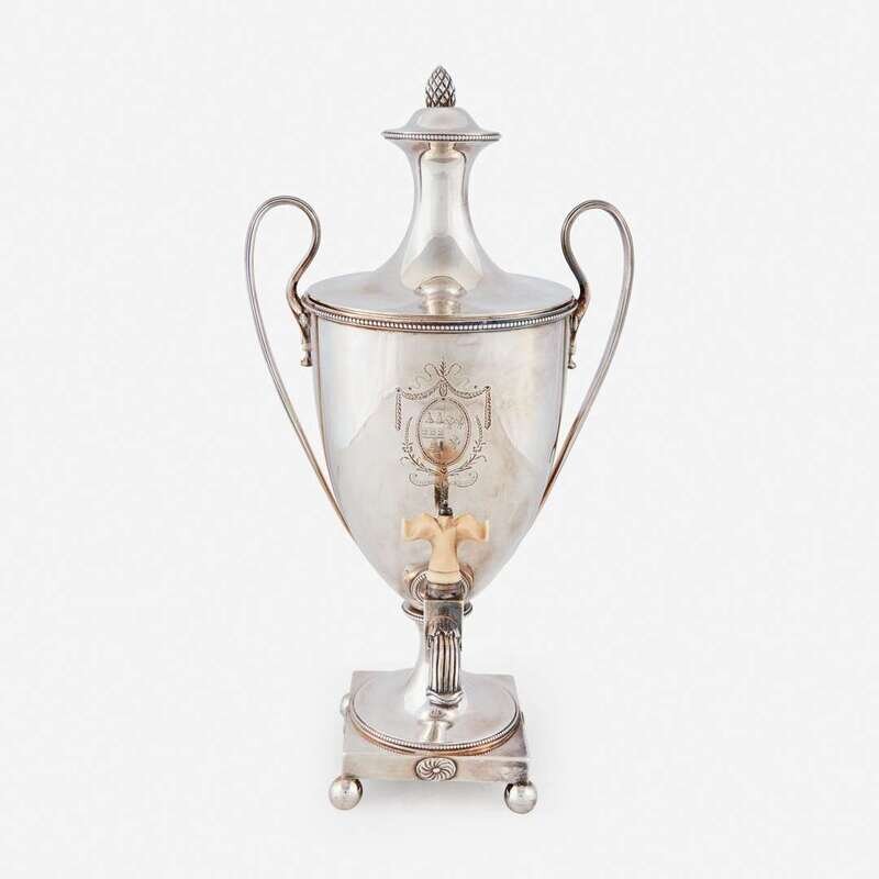 A George III sterling silver hot water urn Maker "IR," possibly John Robins, London, 1782