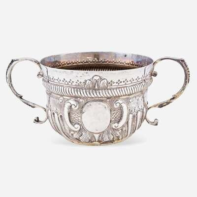 A George II sterling silver twin-handled caudle cup Marked "RB," possibly Richard Beale, London, 1733
