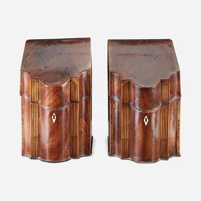 A pair of George III inlaid mahogany knife boxes late 18th/early 19th century