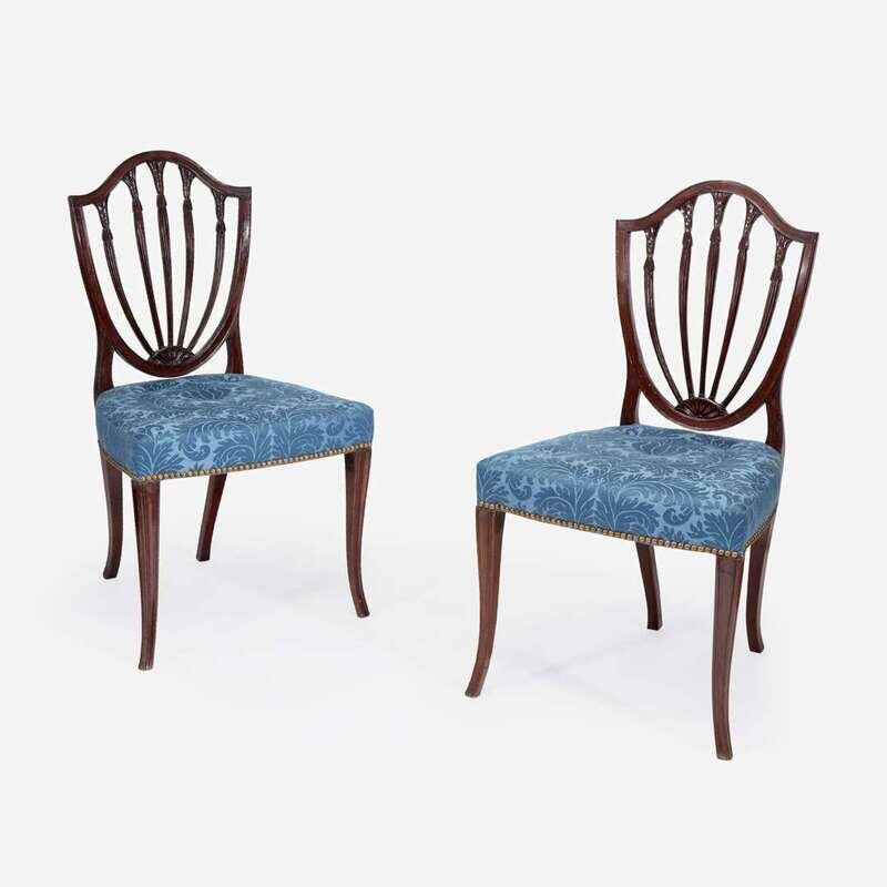 A pair of George III shield-back mahogany side chairs circa 1790