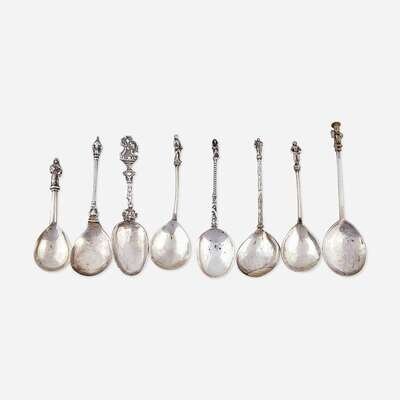 A group of eight Continental silver apostle spoons Most Northern European, 17th-late 19th century