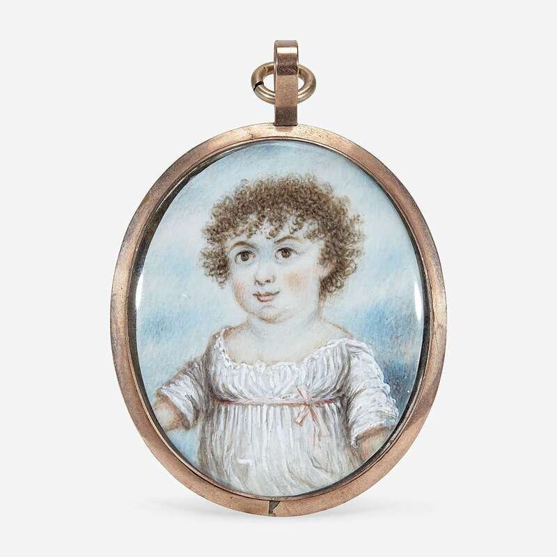 English School 19th century Portrait Miniature of a Child with Short Curls in a White Dress