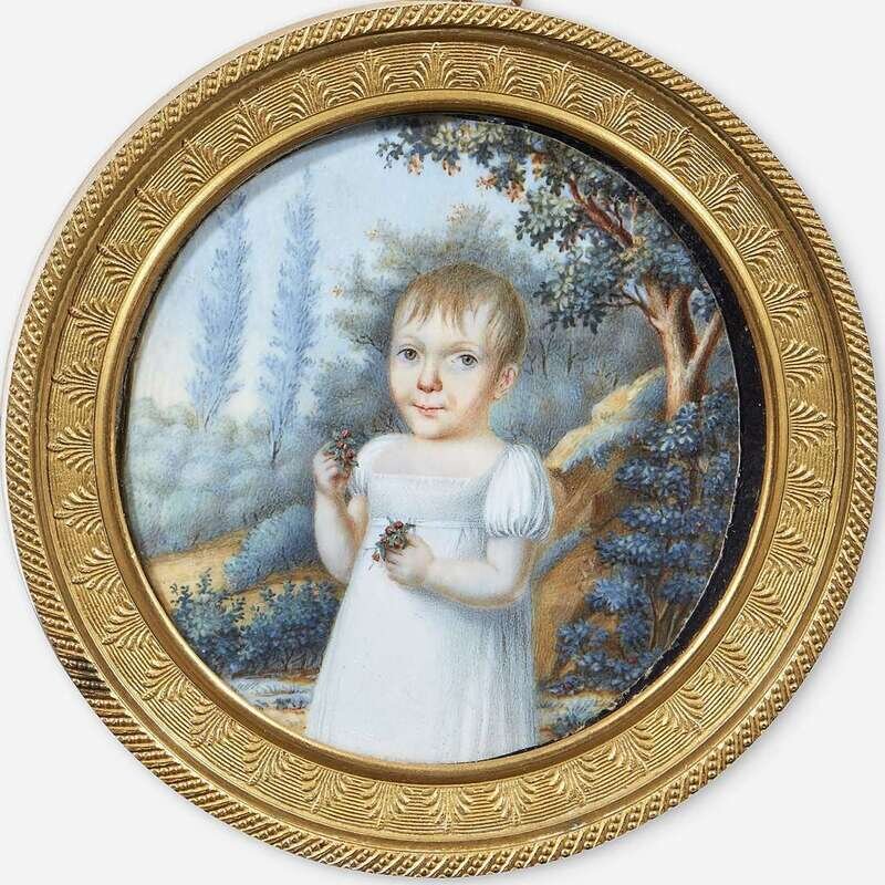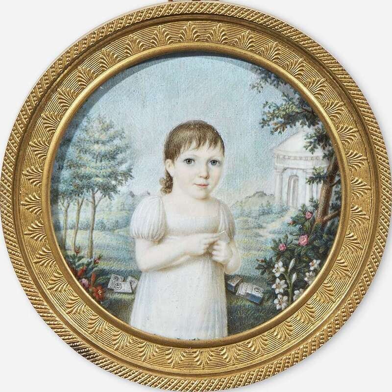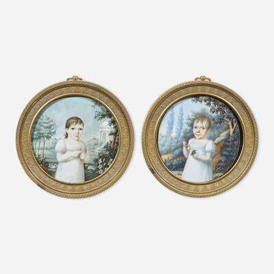 German School 19th century Pair of Portrait Miniatures in the English Garden, Residenz, Munich, circa 1810