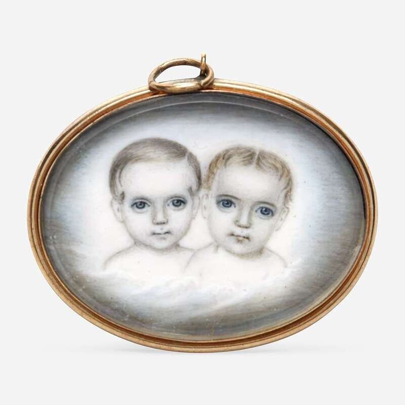Mrs. Moses B. Russell (Clarissa Peters, 1809-1854) Portrait Miniature of a Girl and Boy