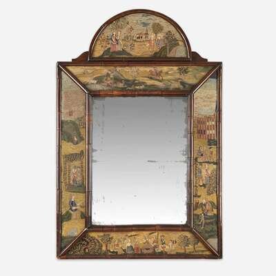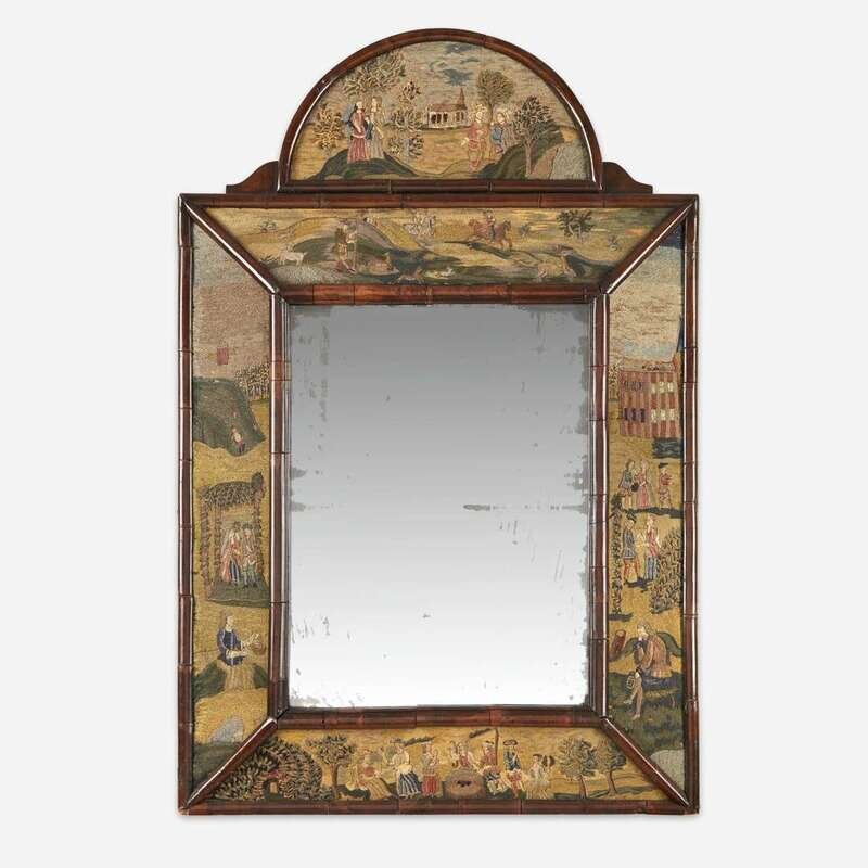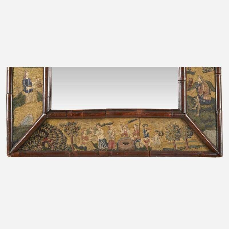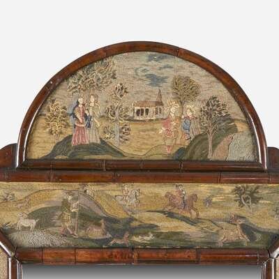 A Queen Anne style needlework and burl walnut mirror late 18th/early 19th century