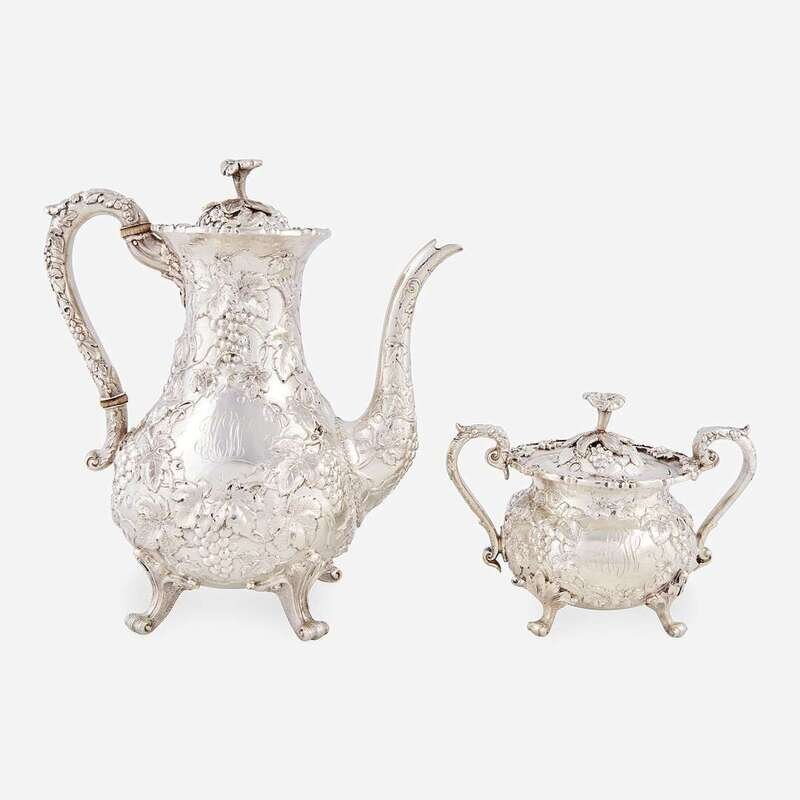 A "Grape" pattern repoussé sterling silver teapot and covered sugar bowl S. Kirk & Son, Co., Baltimore, MD, early 20th century