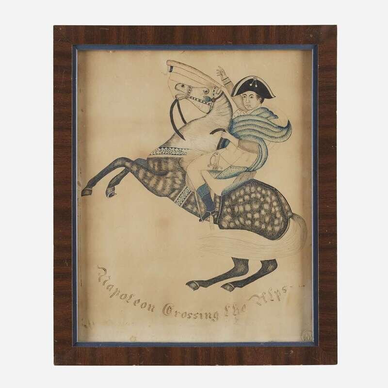 American School 19th century Two Works: Napoleon Crossing the Alps and Portrait of a House Named "Brail Nook"