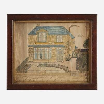 Napoleon Crossing the Alps verso with label inscribed, "Executed with a steel pen by Geo. Poor, Stowe, Vermont," pen and ink on paper, framed; the portrait of a house inscribed "Brail Nook", u.r., and signed "A.E. Couryill (?) Artist", l.r., watercolor on paper, framed.