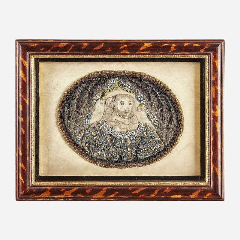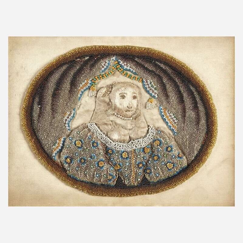 An English stumpwork and beadwork portrait of a lady circa 1650-1660