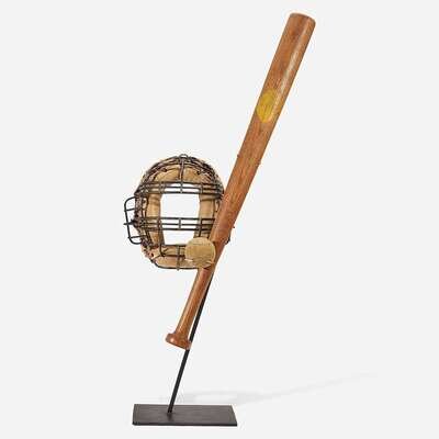 A baseball assemblage: bat, catcher's mask and practice ball second to third quarter 20th century