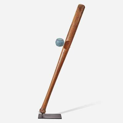 A baseball assemblage: mushroom handle bat and "Worth" practice ball first half 20th century