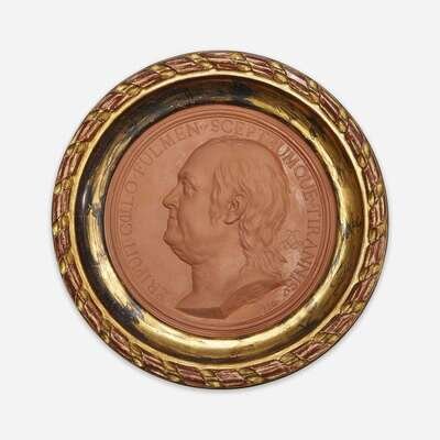 Jean-Baptiste Nini (Italian, 1717-1786) A terracotta portrait medallion of Benjamin Franklin (1706-1790), France, 1779