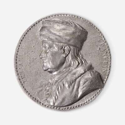 After Jean-Baptiste Nini (Italian, 1717-1786) A cast lead portrait medallion of Benjamin Franklin (1706-1790)