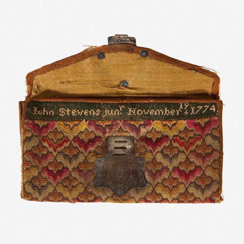 An Irish stitch pocketbook of John Stevens, Jr. Possibly Perth Amboy, NJ, dated "1774"