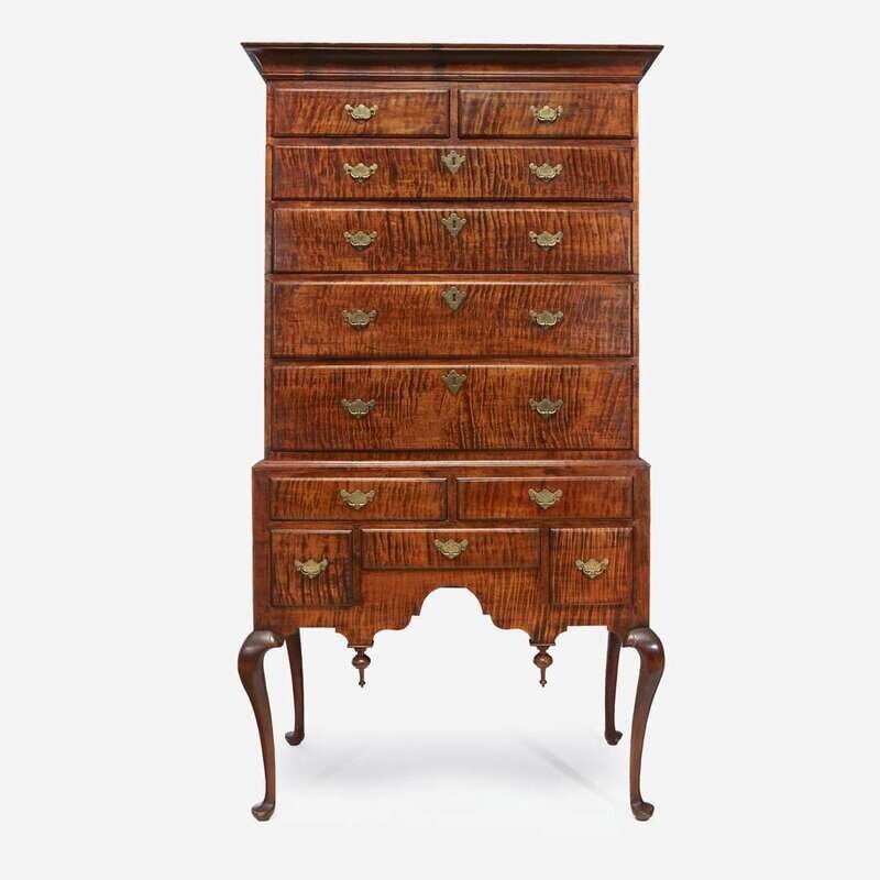 A Queen Anne tiger maple high chest Connecticut, 18th century