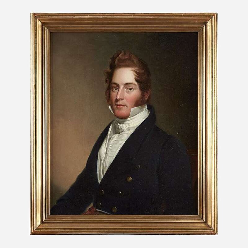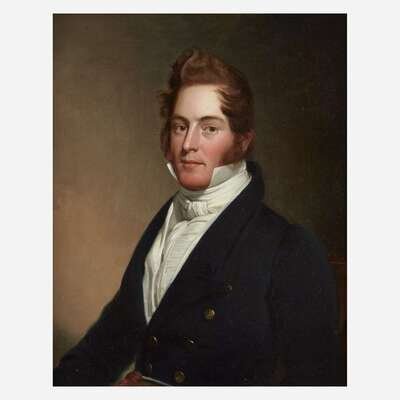 American School 19th century Portrait of a Gentleman in a Blue Coat