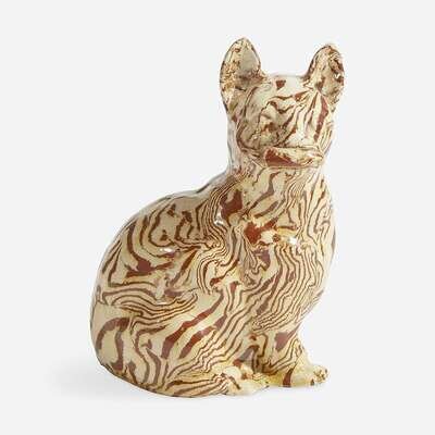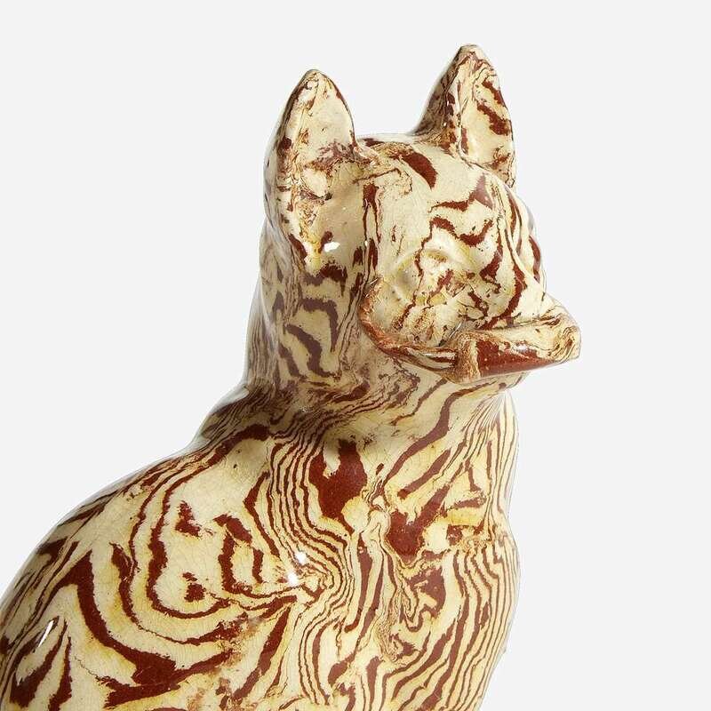 A Staffordshire agateware figure of a cat with mouse circa 1750