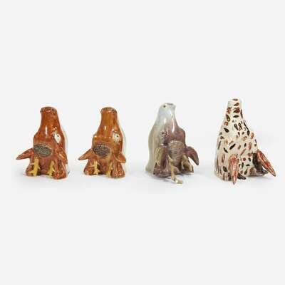 Comprising a pair of pearlware examples, a single pearlware example, and a prattware example.