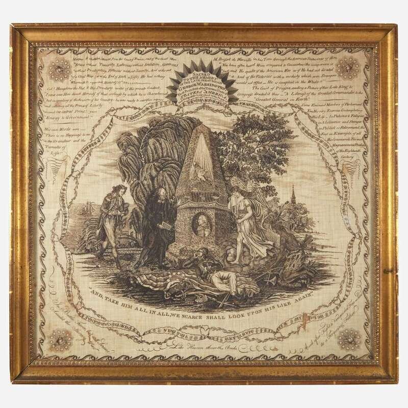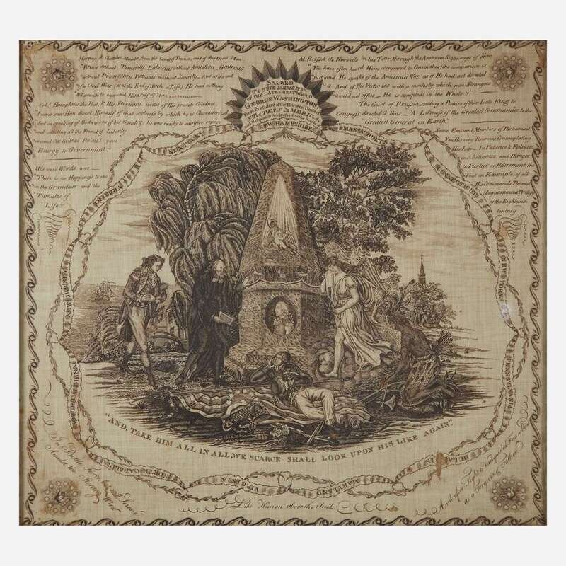 A rare copperplate-printed handkerchief, "Sacred to the Memory of George Washington" Glasgow, Scotland, circa 1800