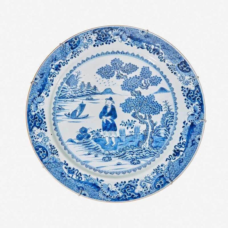 A large Chinese porcelain blue and white charger late 18th/early 19th century