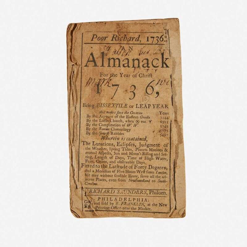 The fourth Poor Richard almanack. The is the first copy of the 1736 edition to be offered at auction in 37 years. Copies in any condition are rare
