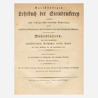 A rare and complete first edition of Alois Senefelder's groundbreaking lithographic manual