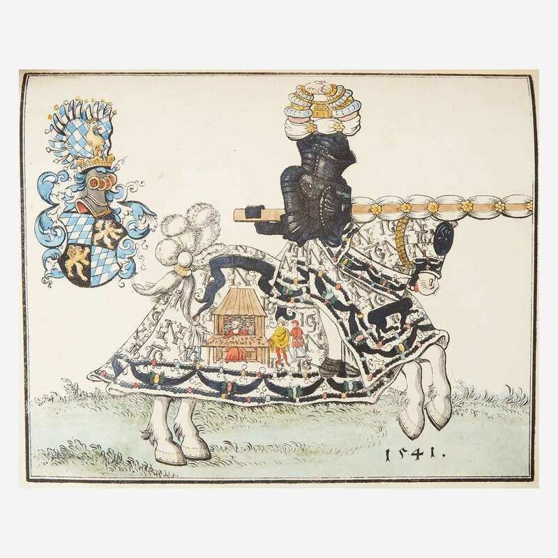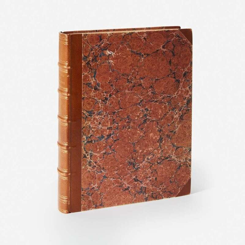 Munich: Karl Thienemann/Vienna: Karl Gerold, 1818. First edition. 4to. xiv, (ii), 370, (2) pp. Preface by Friedrich von Schlichtegroll. Illustrated with 19 lithographic specimen plates at rear (two in color); each with tissue guard, bound with separate lithographic title-page Sammlung von mehreren Musterblättern. Three-quarter tan morocco, stamped in gilt, over marbled paper-covered boards, lightly rubbed; all edges trimmed; title-page lightly darkened and spotted; ink number at bottom of dedication page; scattered light foxing to text; book-plate on front paste-down.