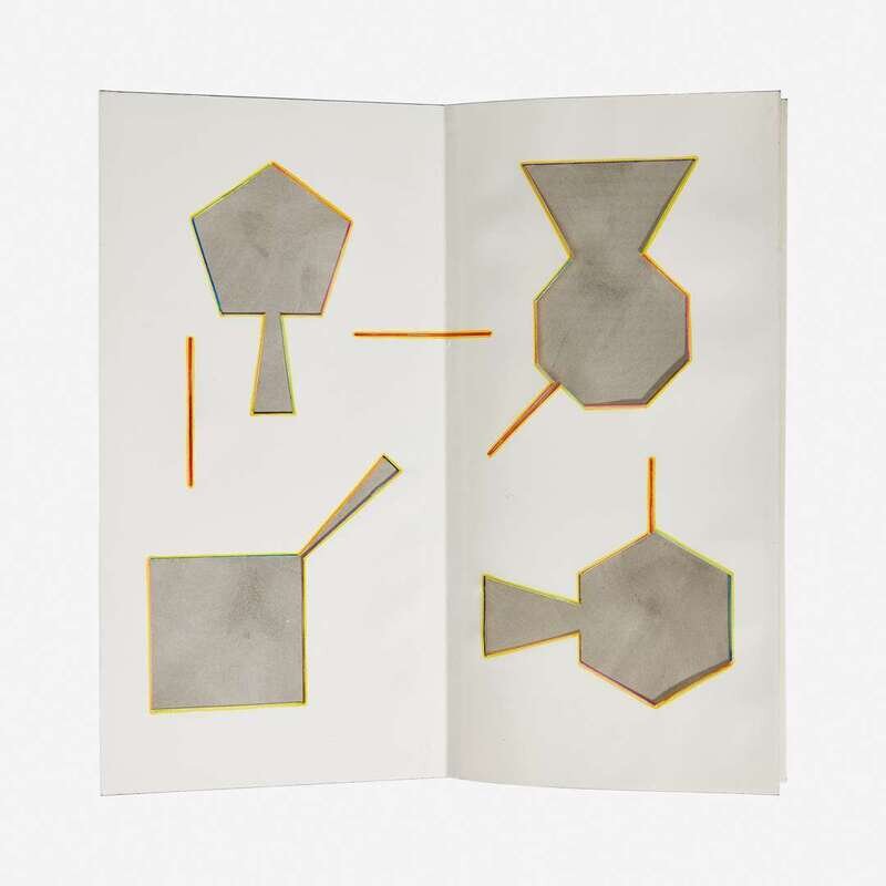 San Francisco: Arion Press, 1980. First and limited edition, #260 of 275 numbered copies, signed by Ray Bradbury and illustrator Andrew Hoyem. Tall folio, 14 x 7 in. (366 x 178 mm). Illustrated with line drawings and hand-colored die-cuts by Hoyem. Original aluminum covers over accordian-style binding; top and bottom edge stained black, fore-edge trimmed; in aluminum frame, latch at top, by Q-Rolo Sheet Metal Products; instruction sheet wanting; book-plate on front paste-down.