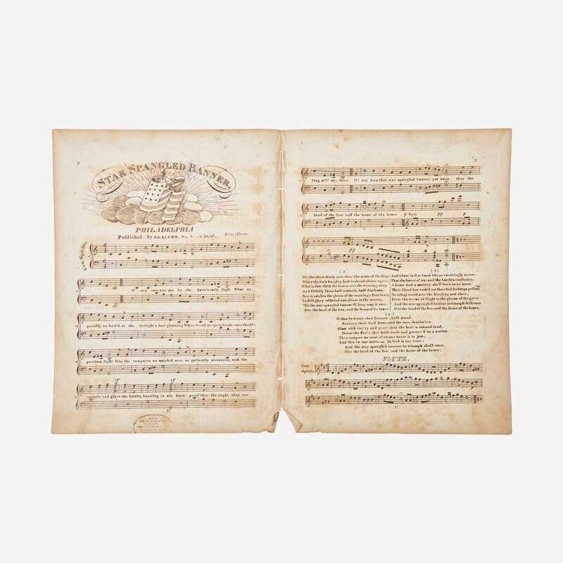First reissue of the first Philadelphia printing, produced from the same plates as the first printing. Originally published by A. Bacon & Co., ca. 1814-16. Early editions of The Star Spangled Banner are scarce.