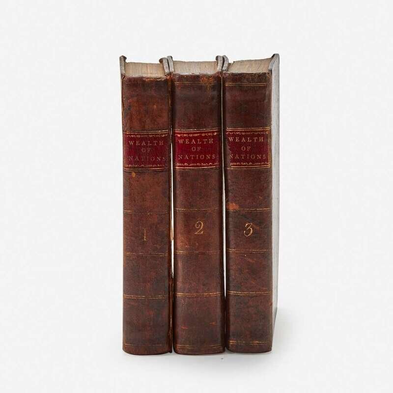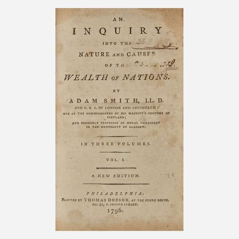 Philadelphia: Thomas Dobson, 1796. In three volumes. "A New Edition" (Second American edition). 12mo. 412; 430; 387, (1), (54) (index) pp. Contemporary full brown calf, stamped in blind, red morocco spine label, front board of first volume starting, spines lightly rubbed; all edges trimmed; old ownership signature scratched out on title-page of first and third volumes, loss at top of title-page in second volume from same; loss at top corner of front free endpaper in first volume; loss to bottom of front free endpaper in third volume, top corner of index leaves creased in same; scattered spotting to text; book-plate of Mann S. Valentine on front paste-down of first and third volume, as well as verso of front free endpaper in second volume; additional contemporary book-plate, name scratched out, on front paste-down of each volume; Valentine Museum ink stamp on front paste-down in first and second volume, on verso of front free endpaper in third volume. Evans 31196