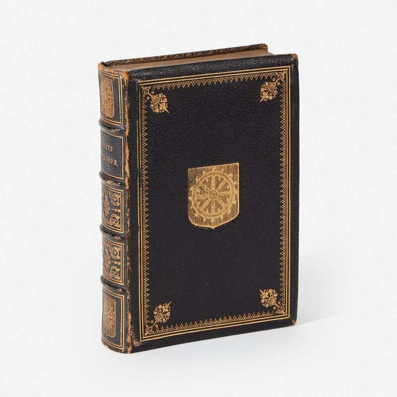 London and New York: Macmillan and Co., 1871. The Globe Edition. 12mo. 509 pp. Introduction by Sir Edward Strachey. Fore-edge painting replicating CSS Nashville burning the ship Harvey Birch off the Irish Coast, November 19, 1861 by Duncan McFarlane (1864). Full dark blue pebbled morocco, stamped in gilt, front and rear joint rubbed, corners lightly worn; all edges gilt; gilt dentelles; marbled endpapers; by Caves & Wilson, Cambridge; two ownership inscriptions on first free leaf; foxing to prelims and rear blanks and endpapers; scattered minor spotting to text.