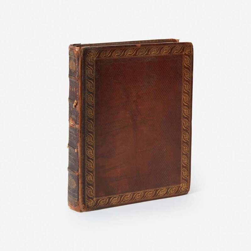 London and Edinburgh: Longman, Hurst, Rees, et al., 1810. Eighth edition. 4to. 343, (i), cxcvi pp. Illustrated with engraved portrait frontispiece, engraved vignette title-page, and six engraved plates. Romantic fore-edge painting of two travellers at the Pass of Lennie, Grampian Mountains, Scotland. Full diced russia, stamped in gilt, rebacked with original spine laid down, extremities lightly worn, spine chipped and blistered; all edges gilt; marbled endpapers; abrasion on front paste-down from removed book-plate; dampstaining in upper gutter of prelims, foxing to same; scattered light dampstaining in upper and lower gutter of most text and plate leaves, scattered minor foxing to same; offsetting from plates onto text; small book-plate on front free endpaper.