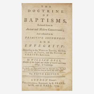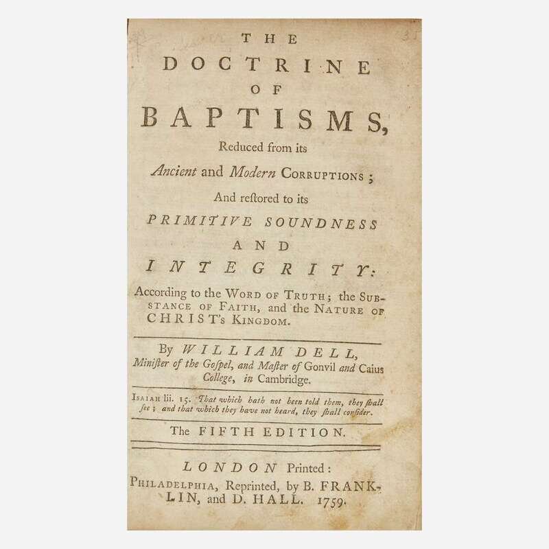 "First printed in London in 1648...The Society of Friends of Philadelphia requested Overseers Anthony Benezet and John Reynell to arrange for a reprinting of this work in an edition of 4,000 copies..." (Miller 702), and enlisted local printers, Franklin and Hall.