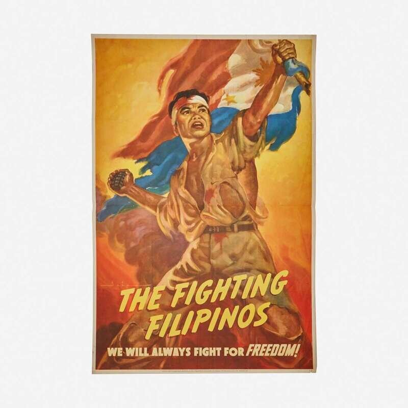 Washington, D.C.: Office of Special Services, Commonwealth of the Philippines, 1943. Color lithographic poster. Condition: A-; creasing from original folds; a few scattered short closed tears along edges. 41 x 27 in. (104 x 68 cm).