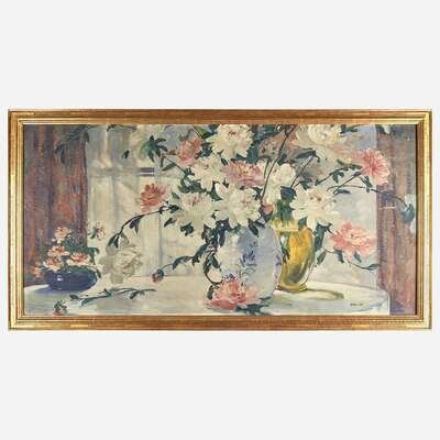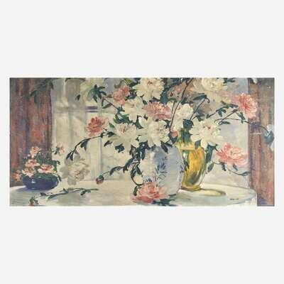 Jonas Lie (American/Norwegian, 1880–1940) Peonies in Full Bloom on the Breakfast Table