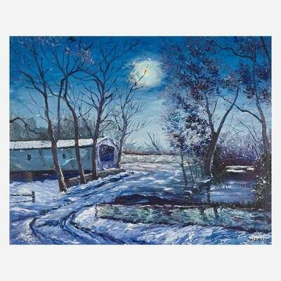Walter Emerson Baum (American, 1884–1956) Covered Bridge in the Moonlight