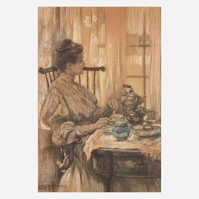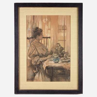 Alice Barber Stephens (American, 1858-1932) Lady with Teapot