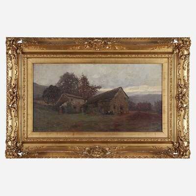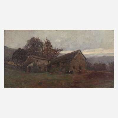 Hal Robinson (American, 1875-1933) Afternoon Landscape with Barns and Cows