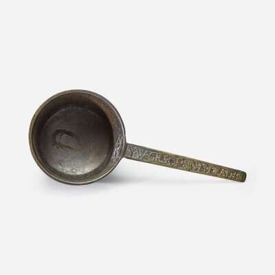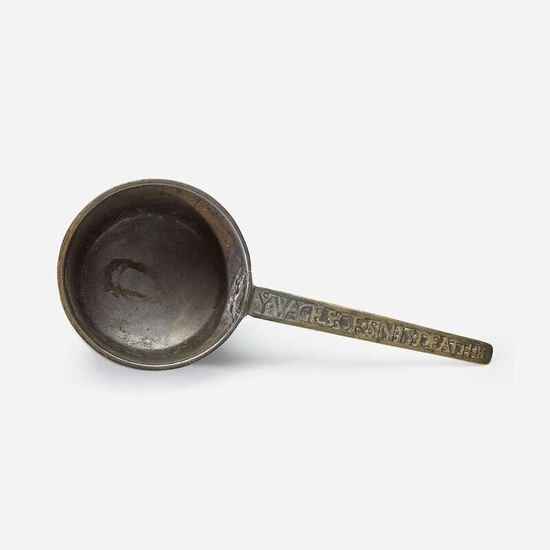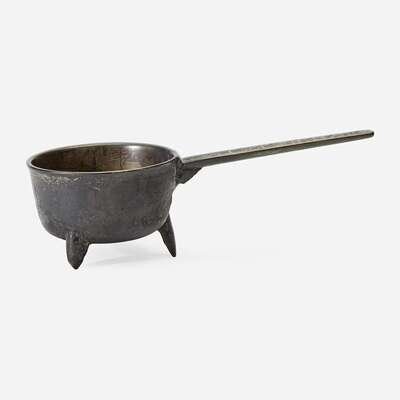 An English Bronze Skillet, Inscribed 'Wages of Sin is Death' 18th century