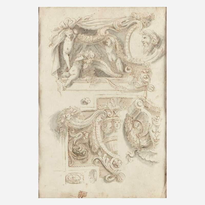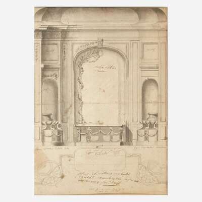 Attributed to Gilles-Paul Cauvet (French, 1731–1788) Deux Projets pour Dessus de Porte: 'La Comédie' and 'La Moisson;' together with a Companion