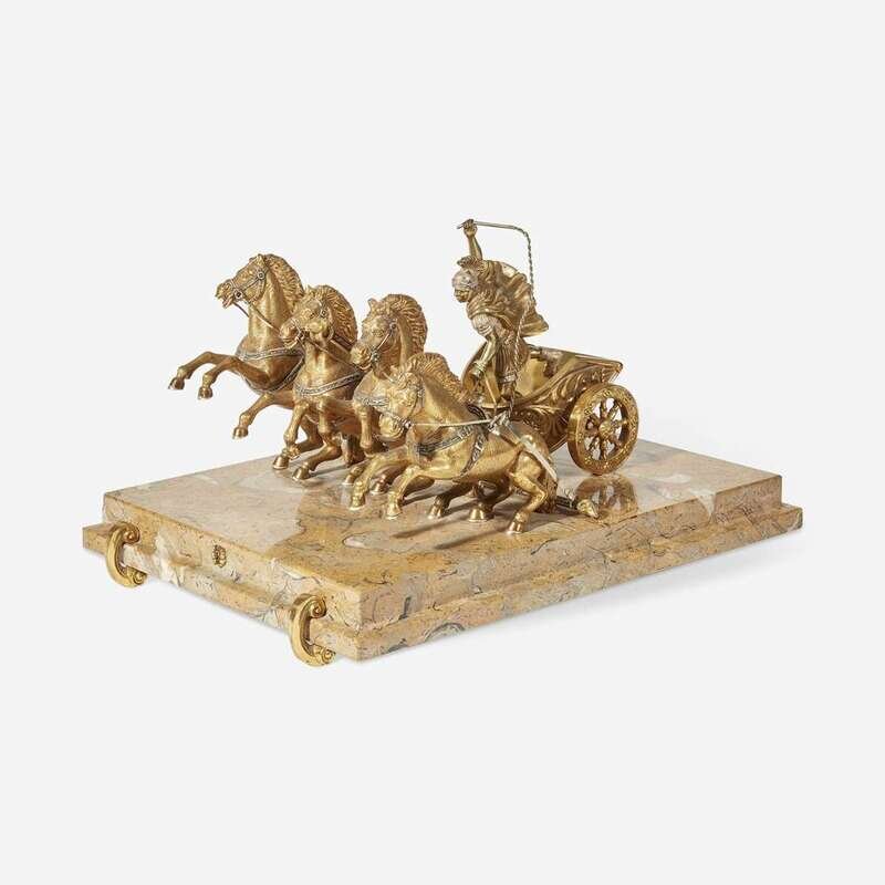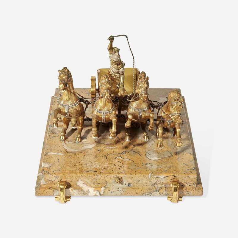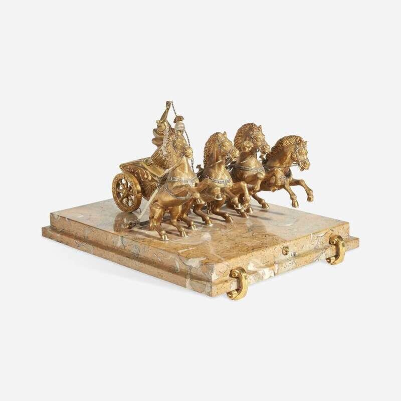 A Continental Gilt and Silvered Metal Model of a Roman Quadriga Led by a Charioteer