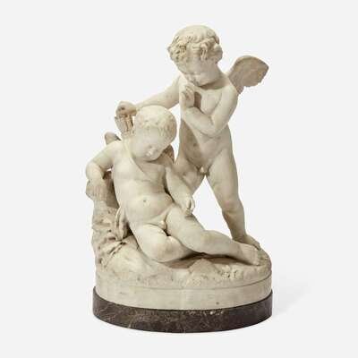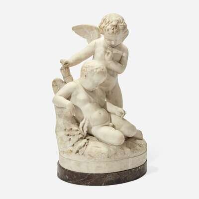 An Italian White Marble Sculpture of Two Putti Nicola Cantalamessa-Papotti (Italian, 1833-1910), dated 1869