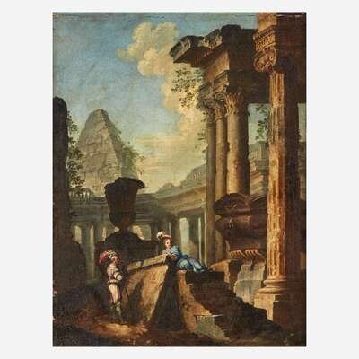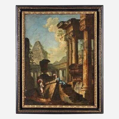 Manner of Giovanni Paolo Panini (Italian, B.C. 1692–1765) Capriccio with Figures Among Ruins