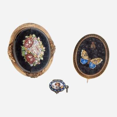 Two Micromosaic and Pietra Dura Brooches 19th century