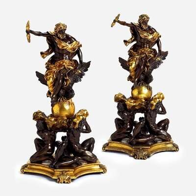 After Alessandro Algardi called L’Algarde (Italian, 1598-1654) A Pair of Monumental Bronze Sculptures, 'Jupiter Victorious over the Titans,' cast by Charles Crozatier, circa 1850