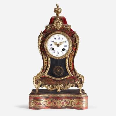 A Louis XVI Style Ormolu-Mounted Brass-Inlaid Red Tortoiseshell Boulle Marquetry Bracket Clock on Stand* Maison Wurtel, Paris, 19th century