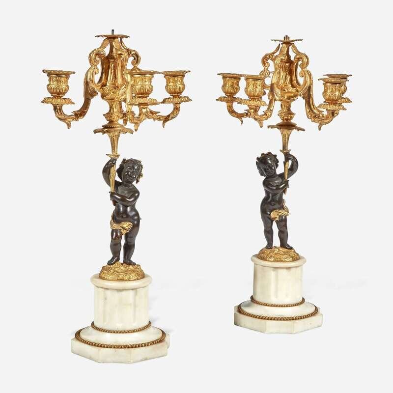 A Pair of Louis XVI Style Gilt and Patinated Bronze Candelabra Late 19th century